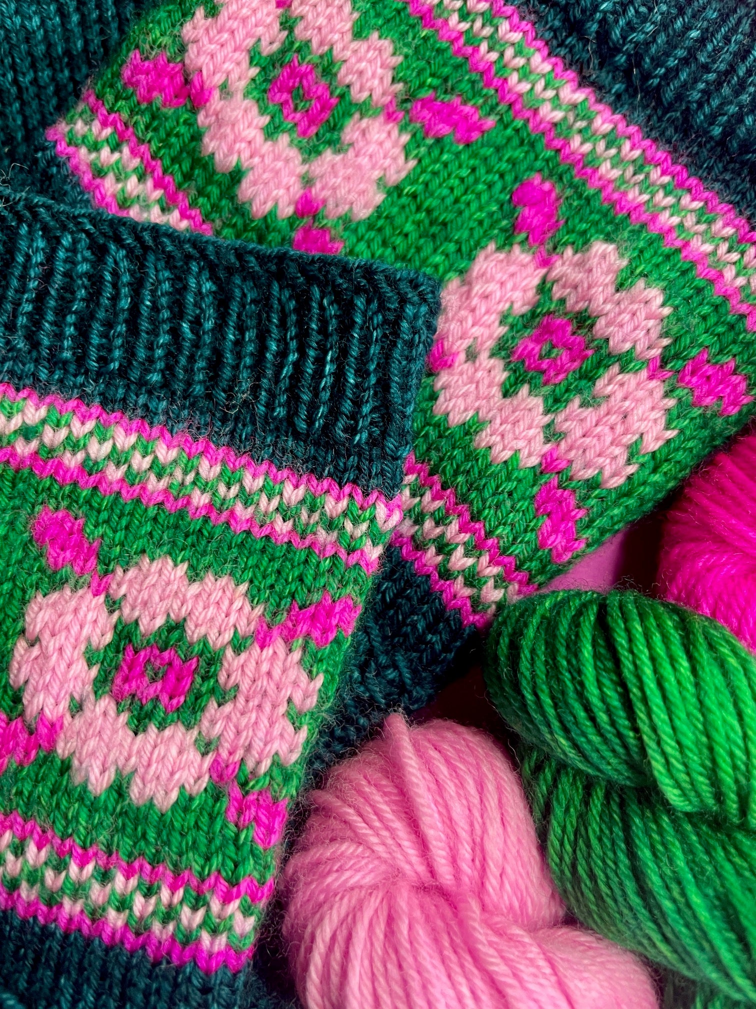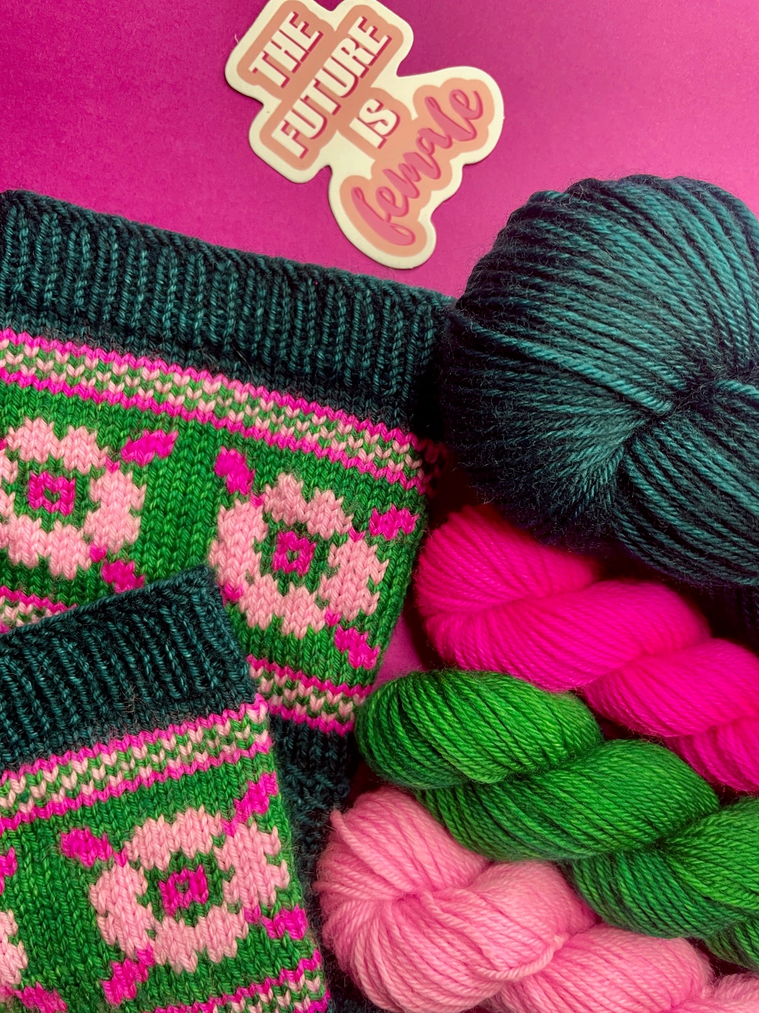 - 3 écheveaux de Mérinos socks fingering Emeraude, Barbie et Rose poudré pour la couleur B, C, D en 20 gr ( 80 m )