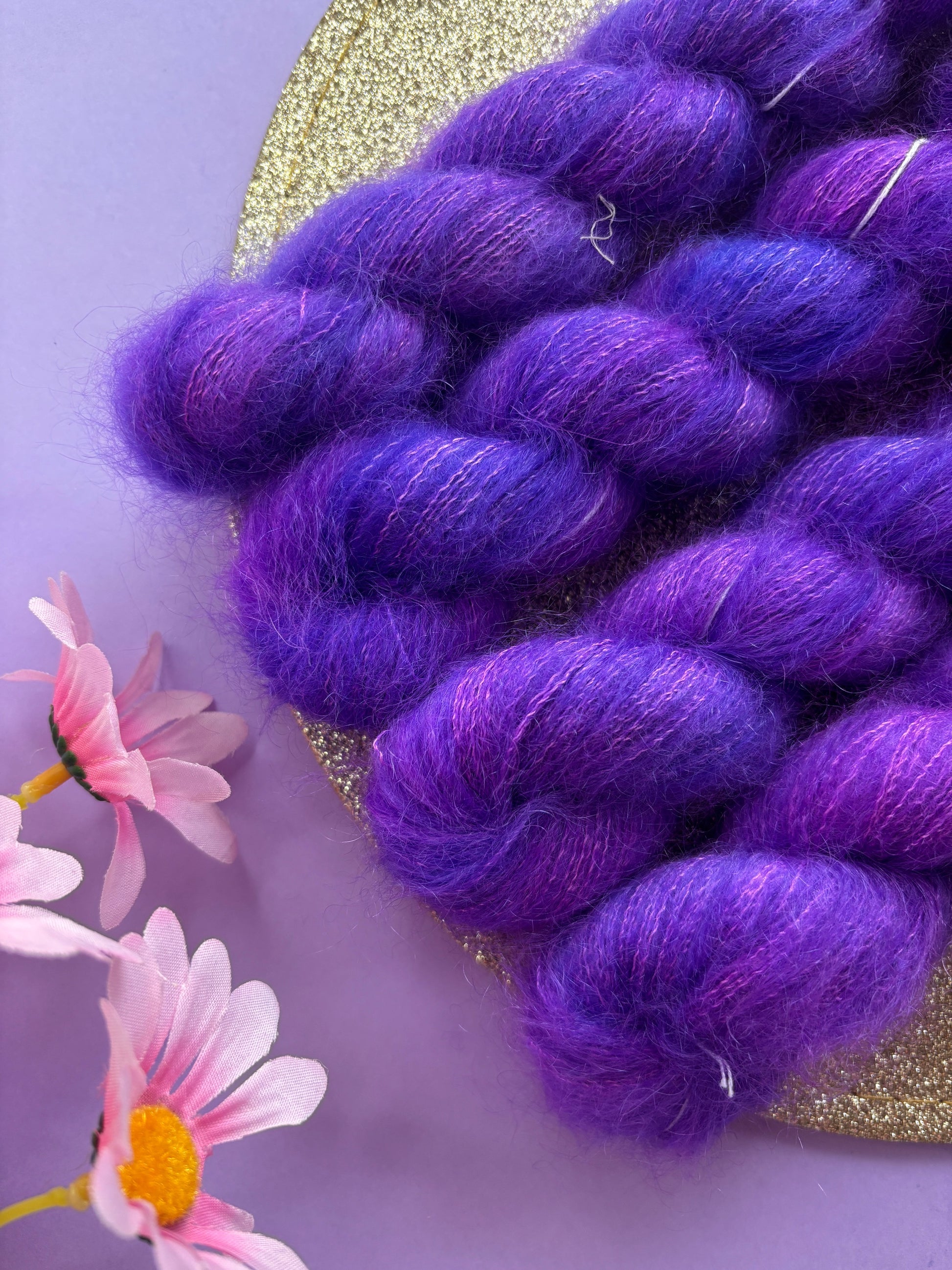 Le mohair SuperKid est un fil luxueux et très doux qui provient de la première tonte des chèvres Angora, il est maintenu par deux brins de soie de mûrier pour lui ajouter de l'éclat ainsi que de la force.
